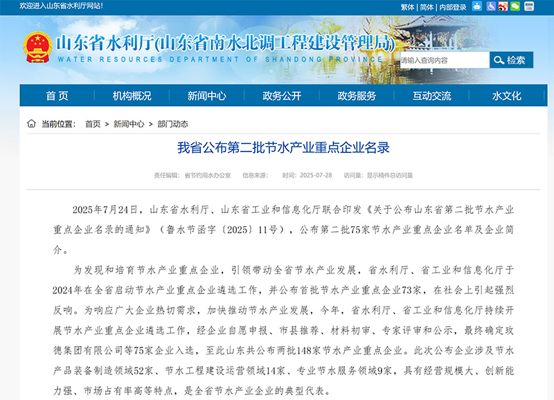 2025年7月24日,我司通過(guò)山東省第二批節(jié)水產(chǎn)業(yè)重點(diǎn)企業(yè),為有關(guān)部門認(rèn)可我們的工作...